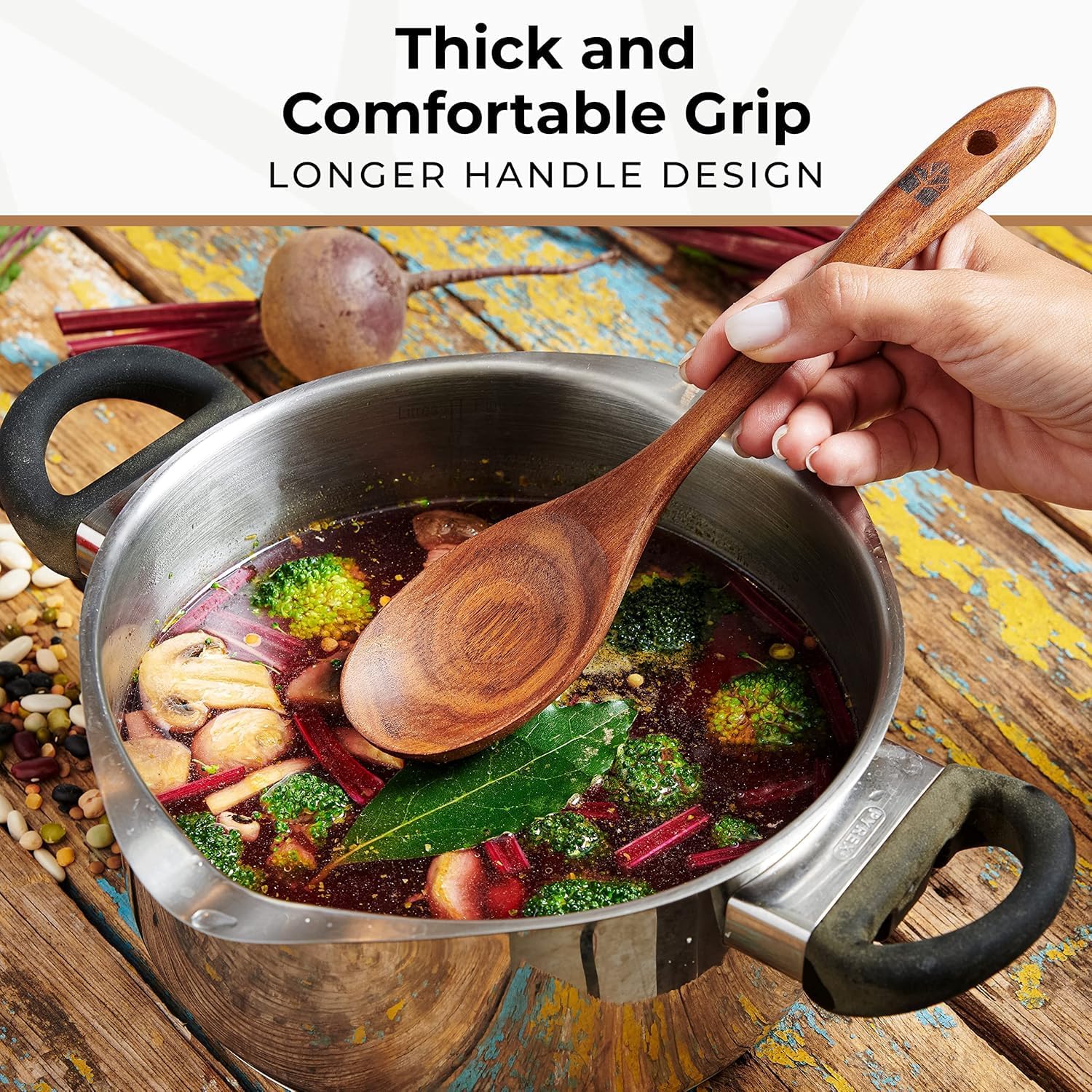 - Wooden Spoons for Cooking – 10 Pc Teak Wood Utensil Set, Durable, Nonstick Safe & Heat Resistant with Ergonomic Handles - Unique Kitchen Gifts for Women Men, Cooking Gifts for Men Women